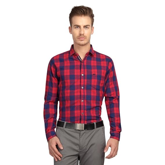 Buy British Line Red With Blue Color Checked Slim Fit Shirt At Amazon In